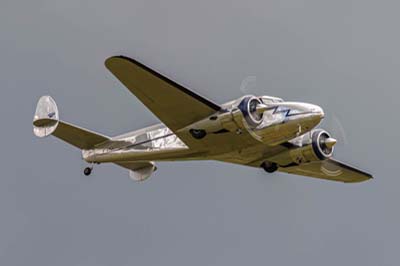 | The distinctively French sound of Bernard Chabbert owner of the polished and gleaming Lockheed 12A Electra (F-AZLL), describing his wonderful aircraft, as his son flew it around the airfield, was one of the many highlights of the show for me. The escapades of its original owner Sydney Cotton a Naval Attache and volunteer spy, were told to the enthralled spectators. |