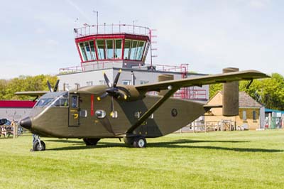 Left to right: Short SC.7 Skyvan (G-PIGY) of Invicta Aviation which is now respendent in a new smart military style olive green scheme.