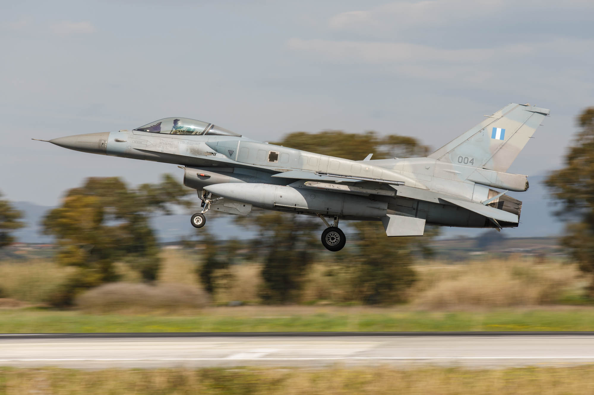 | Lockheed Martin F-16C Block 52M Fighting Falcon (004) of 116 PM (Combat Wing), 335 'Tigris' Mira (Squadron) based at Araxos. |