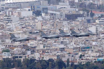 Left to right: Dassault Rafael EG (454, 456) with Rafael DG (443, 444) with 332 Mira Geraki (Hawk) based at Tanagra.