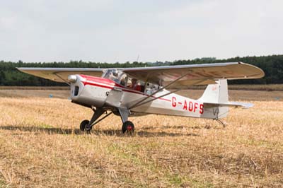 | Left to right: Auster J5L Aiglet Trainer (G-AOFS) and the departing Auster B8 Agricola (G-CBOA). |