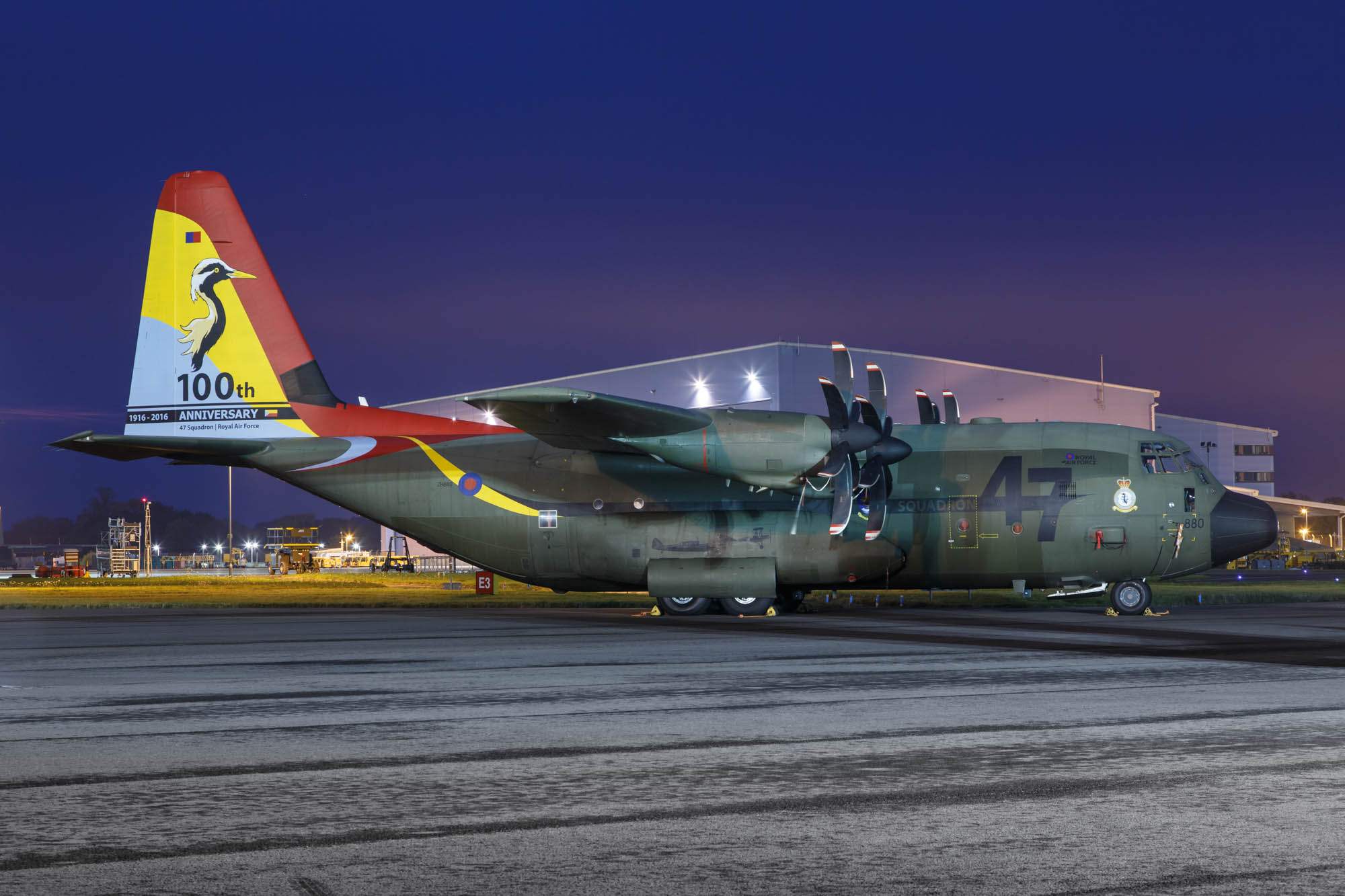 | Lockheed C130J Hercules C.5 (ZH880) in a special 47 Squadron 100th anniversary scheme. |