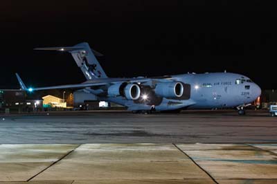 | Left to right: Boeing C-17A Globemaster III (ZZ176) with a specially marked tail of 99 Squadron. |