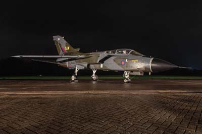 The second SEPECAT Jaguar night shoot since their retirement from active taxiing was organised by Neil Cave (TimeLine Events). He got together with 238 Squadron and 1 SoTT at RAF Cosford to raise another £5,000 for the RAF Benevolent Fund charity. A pair of Tornado GR.1s were added to the aircraft on display. The weather for this second event was dull so the sunset shots were not possible. Once again Neil set up lighting and his smoke generators for some extraordinary scenes with re-enactors.