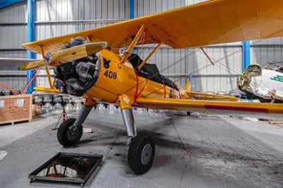Left to right: Boeing Stearman N2S-3 Kaydet (4280 '408' registered G-FRDM c/n 75-2610) ex US Navy. Painted in USN colours as '408'.