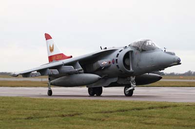 'Ninja 1' Harrier GR.9A (ZG506) in a retro GR.1 camouflage scheme it was first to leave for the final formation flight. It was piloted by