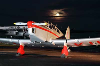 | Left to right: Percival P.31 Proctor 5 (G-AKIU) despite taxiing in minutes refused to restart for its engine run, the moon made for any interesting back drop, shame the Heron added unwelcome clutter to the background. |