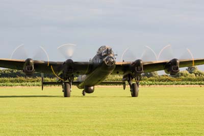 By 19:00 everyone was moved back a little and 'Just Jane's Merlin engines were started up. She then taxied out to the end of the grass runway to make a fast taxi-run in easy reach of all photographers with a telephoto lens. Miraculously at this point the sun streaked across the airfield for the first time in the whole day. 'Just Jane' for the next 15 minutes taxied around in a sort of dance immediately in front of us with the golden evening light enhancing her every move. Nothing in the backdrop of open countryside betrayed the shots as being taken nearly 70 years after the Lancaster was first flown.