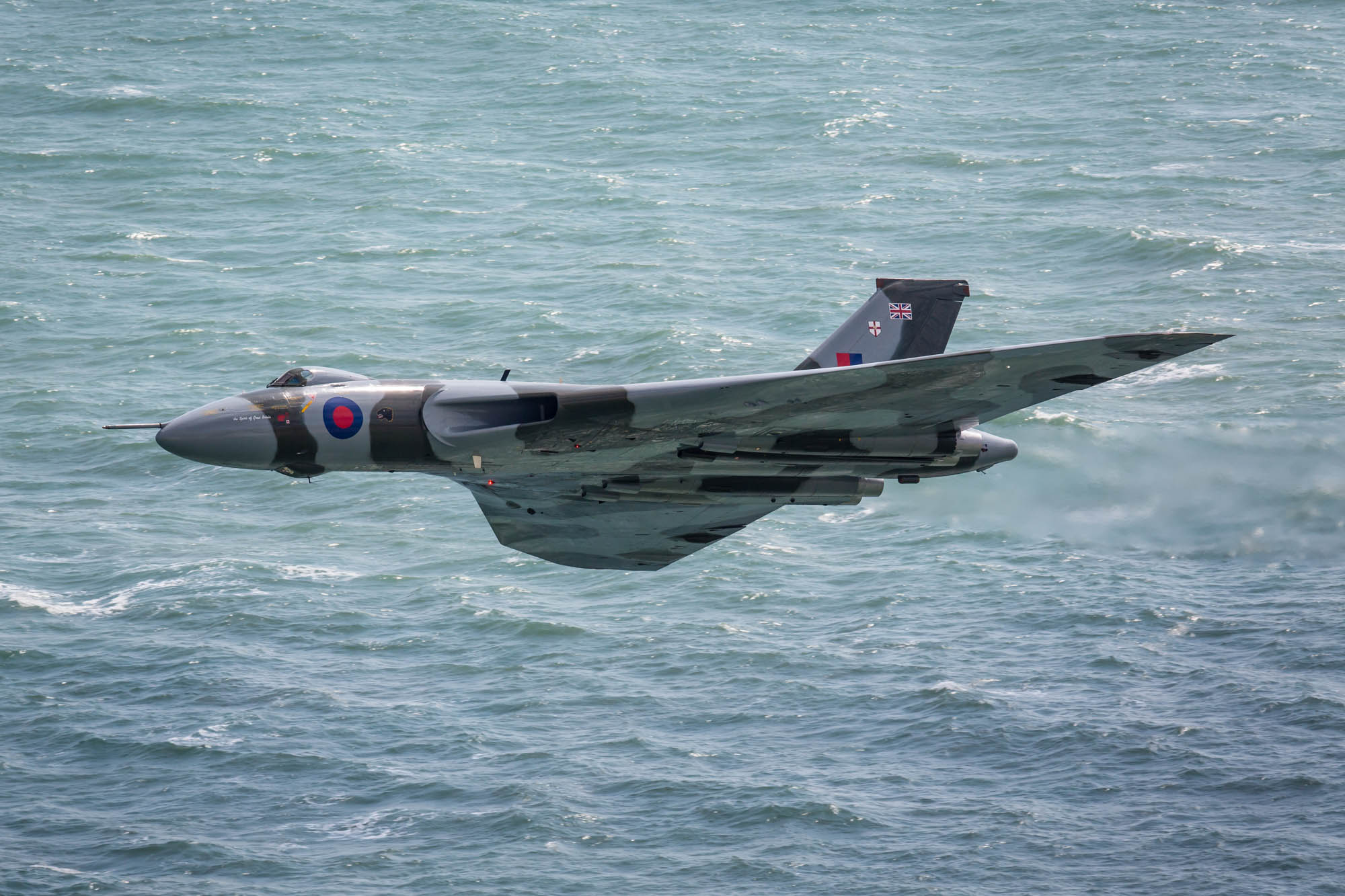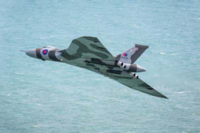 | Avro Vulcan B2 (XH558/G-VLCN) the second pass just above the waves. |