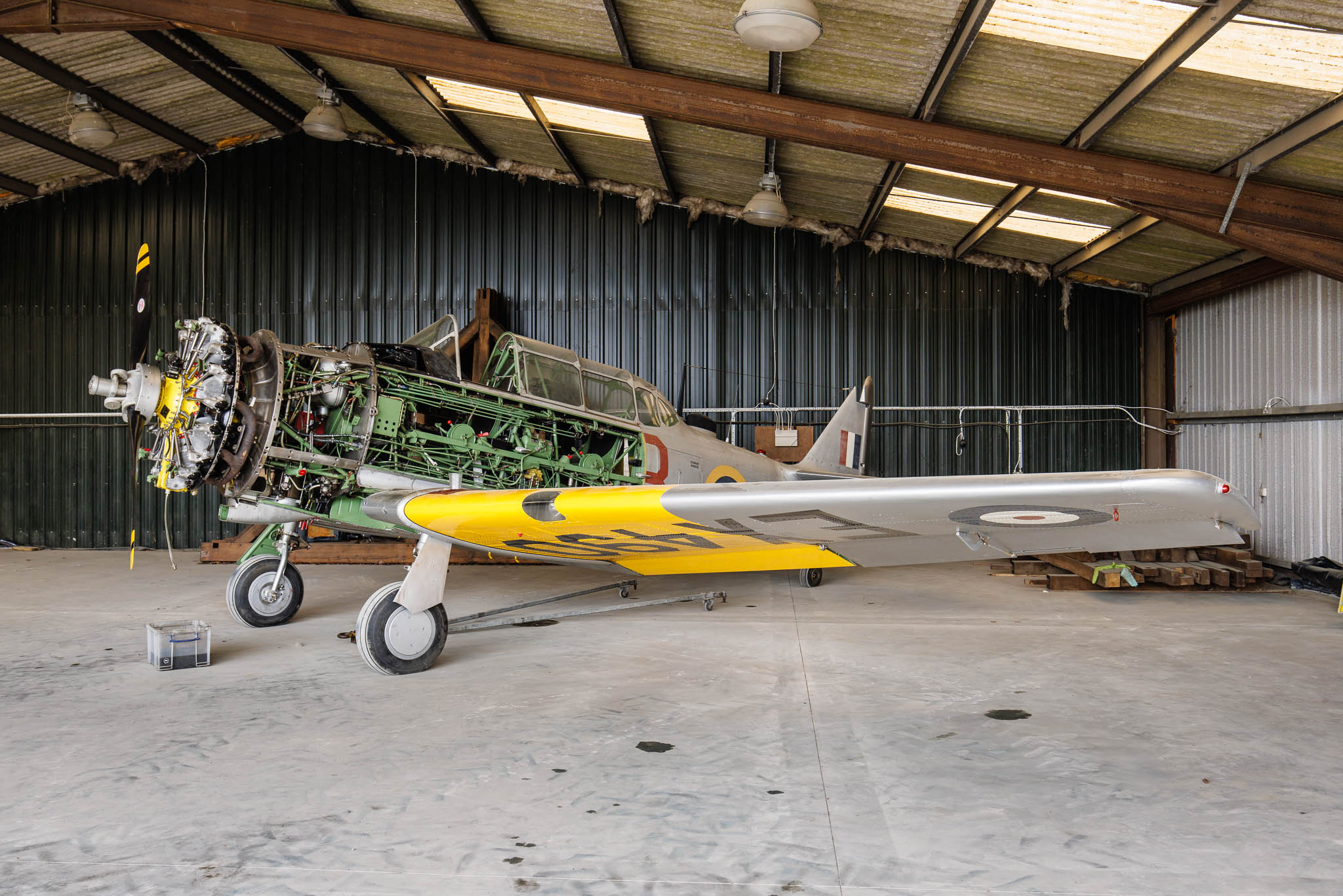 | Left to right: North American T-6H-4M Harvard (MM53796 registered G-CLCJ painted as 'EX490 78') ex Italian AF. Built by Canadian Car & Foundry at Fort William (Thunder Bay, Ontario, Canada). |