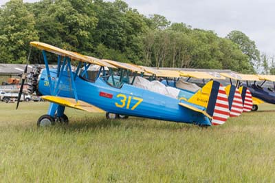 | Left to right: Boeing Stearman PT-13D Kaydet (USN 61042, USAAF 42-17001 registered G-CIJN '317' previously ZK-RDK and N1391V c/n 75-5164). |