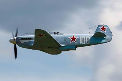 Yakovlev Yak-3UA (0470107 'White 100' registered D-FJAK) This is a new build aircraft built by Yakovlev at Orenburg in Russia from 1991 using the original plans but utilising an all metal construction with an Allison V-1710 engine. The original Yak-3s entered service as a short range interceptor fighter in 1944. 4,848 Yak-3s were built and they proved to be highly successful due to their impressive rate of role, climb and turn, it first appeared at Flying Legends in 2008.