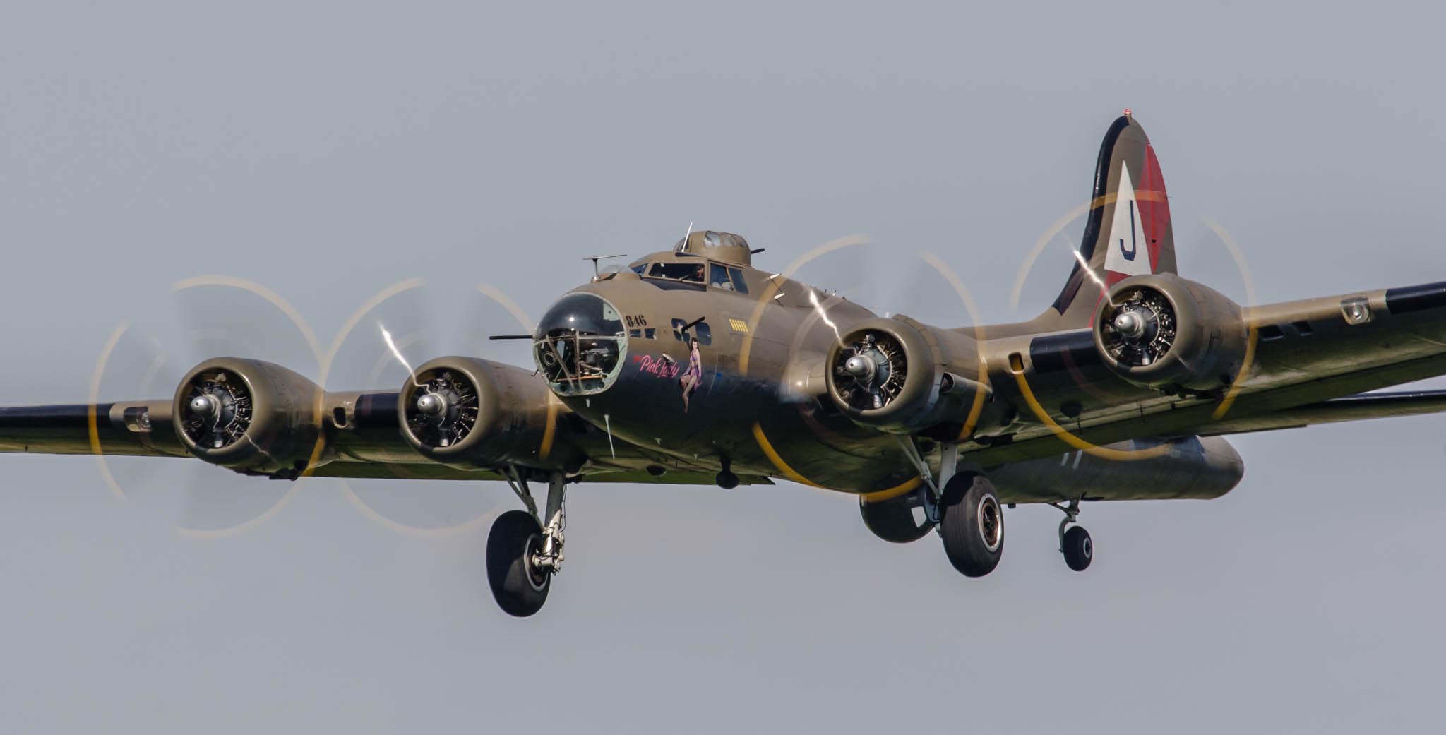 | Boeing B-17G Flying Fortress (44-8846 'DS-M' / F-AZDX) 'Pink Lady' on approach - 400mm 1/80 f18. |