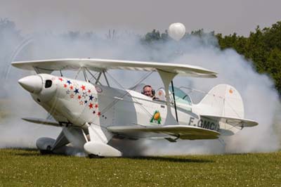 Left to right: Yakovlev Yak-52 (RA-3376K) and performing an extravagant 360 degree turn just in front of the commentary box was Pitts S.2B (F-GMCG). |
