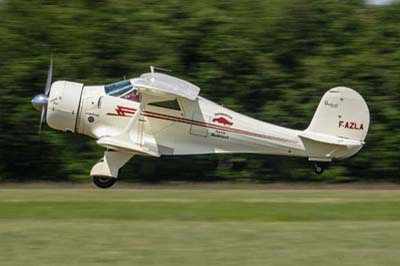 Left to right: Beech D-17S Staggerwings (F-AZLA and F-GUZZ), Dewoitine D.21 (F-AZJD No.290) first flew in 1926. - 400mm 1/80 f13. |
