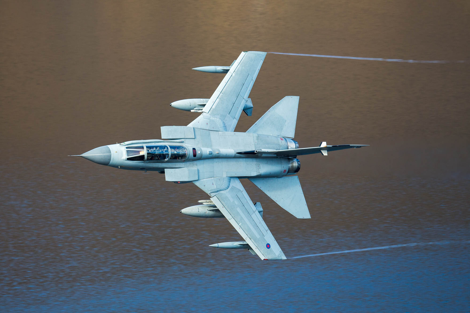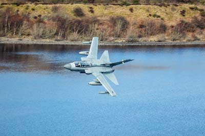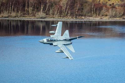 | Tornado GR.4 (ZA462 '027') callsign 'Marham 32' passes over the Loch at 100 feet AGL. |