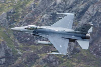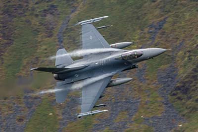 This was the day the Aviano based F-16s but operating from RAF Lakenheath, could be flying the Loop and when 'Buzzard flight' reports as consisting of four F-16s, it's game on. Frustratingly they appear 'in' the Loop very high. Fortunately one or two of the jets passed just below the high hilltops in front and were captured well. Another fhree F-16s as 'Wild flight' were even higher in the afternoon. Later it was 'revealed' that pilots had left their ground proximity radar warnings set to call out if below 1,000 feet AGL which is normal for when they train in Italy.
