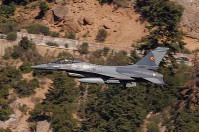 | Left to right: General Dynamics F-16AM Fighting Falcon (1605) with 53rd Fighter Squadron 'Warhawks' (Escadrila 53) Romanian Air Force (Fortele Aeriene Române). They are based at the 86th Air Base 'Lieutenant Aviator Gheorghe Mociornita' (Baza 86 Aeriana) at Borcea/Fetesti. |
