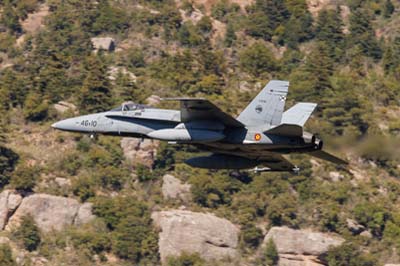 | Left to right: EF-18M Hornet (C.15-82 '46-10') of 462 Escuadrón 'Halcones' (Falcons), Ala 46 (46th Wing) Spanish Air Force (Ejército del Aire), based at Gando Air Base, Gran Canaria. |