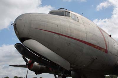 Left to right: Douglas DC-4 (N31356 '44-42914') was originally delivered to North West Airlines in 1946 eventually ending up in open store at Avra Valley in Arizona. In 2002 it was ferried via Iceland to North Weald by Aces High for a film on the Berlin Airlift. Douglas DC-4s (N44914 '56498') was also flown to North Weald in 2002 by Aces High. |