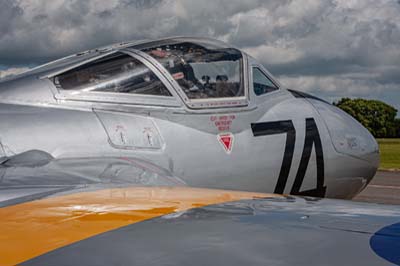 | Left to right: de Havilland DH-115 Vampire T.11 (G-VTII / WZ507 '74') and Beech D18S Expeditor (N96240 ex G-AYAH) which still resides in a corner of the airfield. |