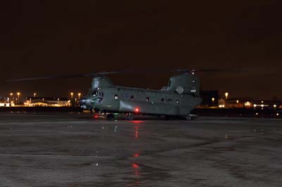 | Left to right: Chinook HC.3 (ZH900) of the Chinook Development Flight departing for its home base of RAF Odiham as 'Vortex 542'. |