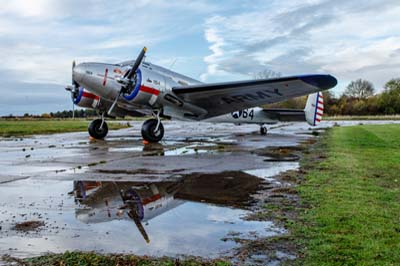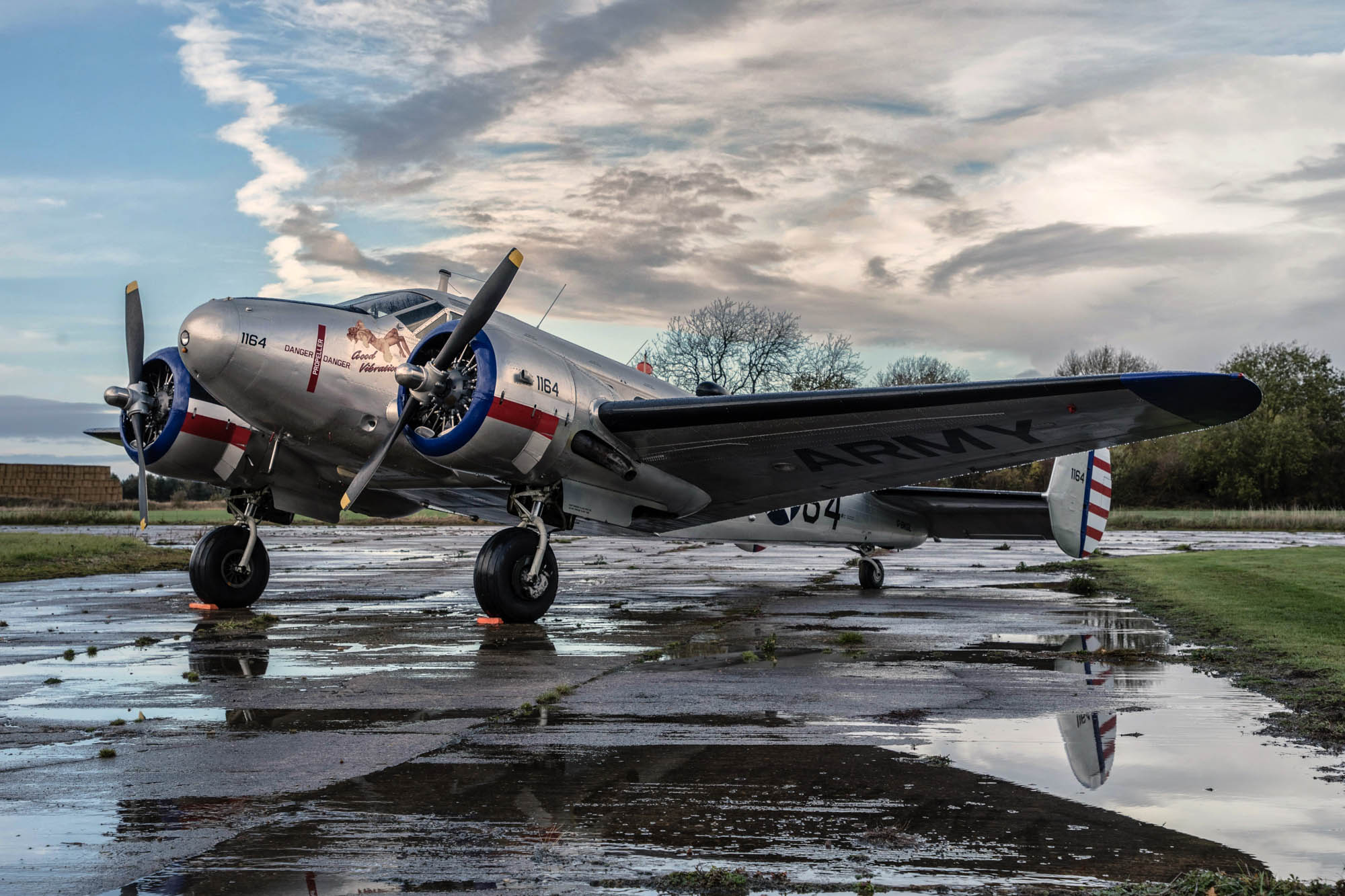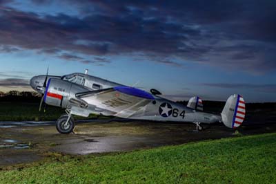 Privately owned Beechcraft Model D-18S 3TM (G-BKGL c/n CA-164) built during World War Two and re-built by Beech in 1952 for the RCAF as a CT-128 Expeditor serial 1564 and later 5193 from 1967 but declared surplus in 1971 with Crown Assets Disposal Corporation in Canada. It was civil registered CF-QPD in early 1980s when the Aircraft Restoration Company restored it for the air show circuit operating from Duxford, firstly painting it in a US Navy scheme before re-painting it in a US Army Air Corps scheme as '1164' by 1992 and modifying the markings in 2012. Since May 2020, it was owned by Aerial Advantage Ltd. of Old Buckenham.