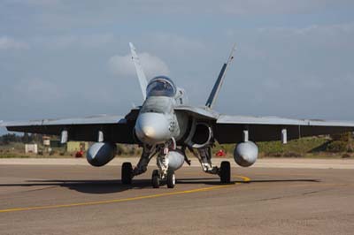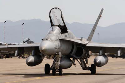 | McDonnell Douglas EF-18A (C.15-87 46-15) taxiing back after completing a sortie. |