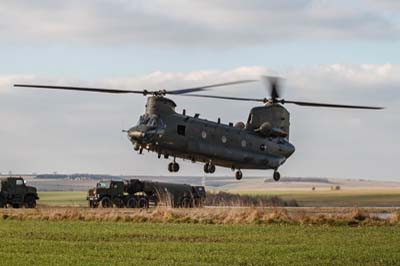 | Merlin HC.3 (ZJ130 'O') of 28/78 Squadron from RAF Benson arrive alongside Apache AH.1 |