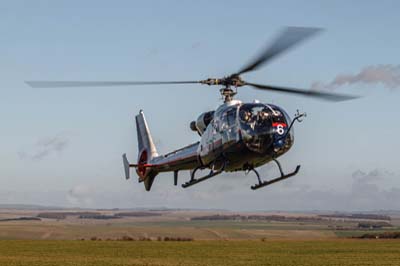 | Gazelle HT.3 (XZ936 '6') of QinetiQ / Empire Test Pilots School (ETPS), Copehill Down is in the background in November 2011. |