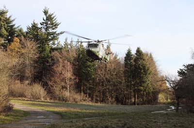 | Lynx AH.7 (ZD274 'E' ) in another Confined Landing Area after circling around several times. |