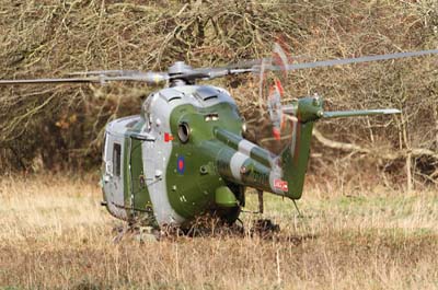 | Lynx AH.7 (ZD274 'E' ) in a confined landing area. |