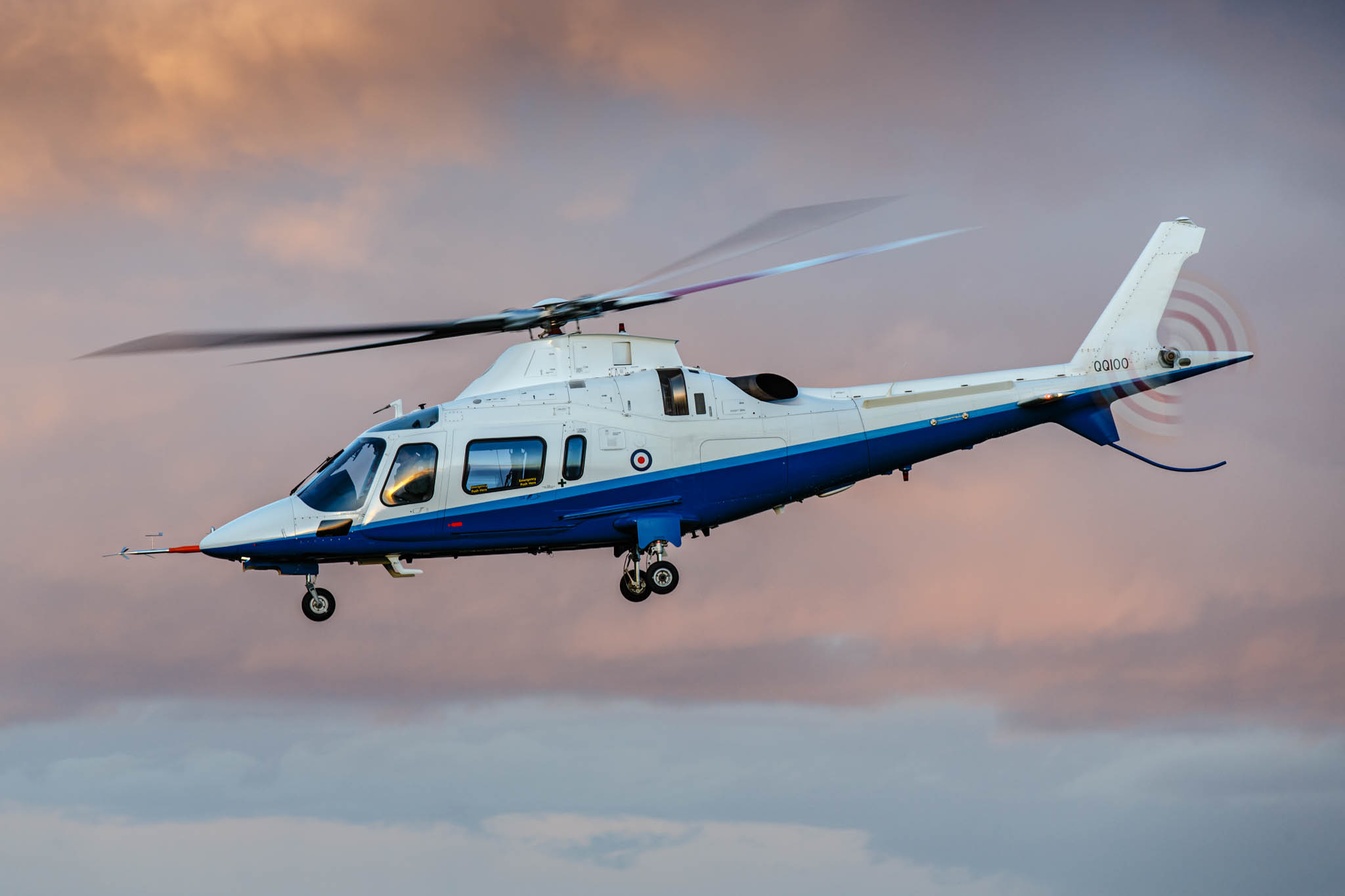 Left to right: Agusta-Westland AW-109E Power Elite (QQ100) of Empire Test Pilots School (ETPS) from Boscombe Down was using callsign 'Tester 79'.