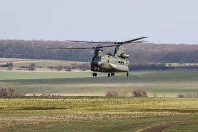 Wednesday March 4, 2015 The third time in as many weeks on Salisbury Plain hoping to catch the former Royal Navy Sea King which is now operated by QinetiQ at Boscombe Down. After a quiet hour on DD I decided to go across to EVDZ I made it in time to get the elusive Sea King which was followed by a Chinook. Early afternoon with the DZ being marked out for a para-drop and with 'Marine 13' calling for DD we dashed back there to make a different Wildcat and later a Lynx AH.7. Very pleased with the decision to move which today worked out very nicely.