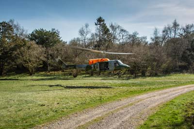 | Bell 212HP AH.1 (ZJ969 'K') of 671 Squadron with a student at the controls on the DZ. |