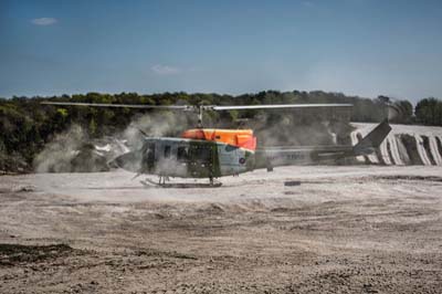 | Bell 212HP AH.1 (ZJ969 'K') of 671 Squadron based at Middle Wallop practising 'brown out' conditions in the CCDA. |