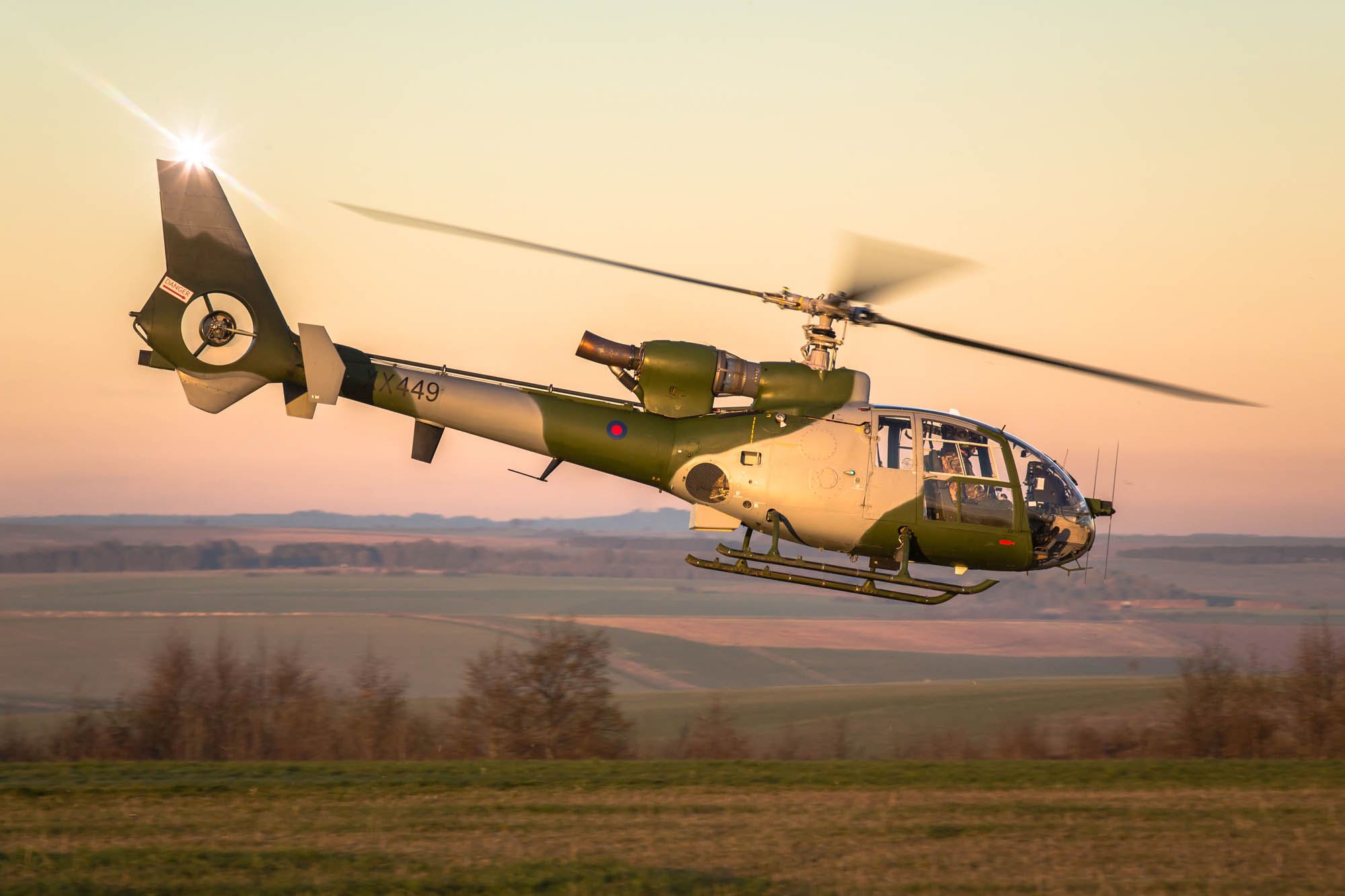 Left to right: Gazelle AH.1 (XX449) using callsign 'Gauntlet 39' with QinetiQ.