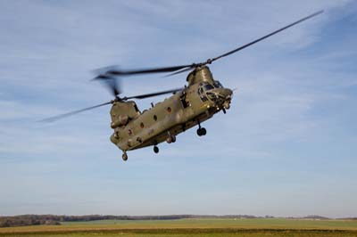 | Chinook HC.4 (ZA710) using callsign 'Vortex 424' with Odiham Wing arriving at DD from the west. |