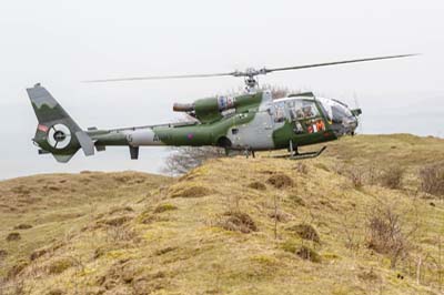 | Gazelle AH.1 (XX453) using callsign 'Tester 05' of QinetiQ based at Boscombe Down in a small valley beside the EvDZ. |