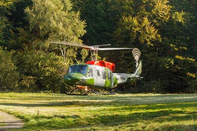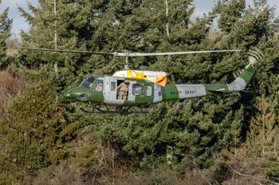 Bell 212 AH.3 (ZK067 'B') in Lindens 1 confined landing area using callsign 'Army Air 001' of 7 (Training) Regiment Conversion Flight.