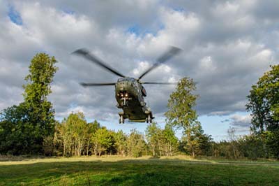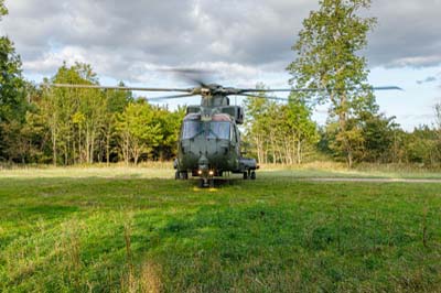 | Left to right: Merlin HC.3i (ZJ130 'O') with 846 Naval Air Squadron, Royal Navy using callsign 'Junglie 560' based at RNAS Yeovilton. |