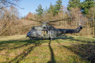Puma HC.2 (ZJ956) pooled with 33 and 230 Squadron using callsign 'Vortex 305' at the 'Triangle' within the Lindens confined landing area in January 2017.