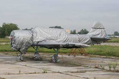 Left to right: Three Yak-52s An-26s (01, 02 and 03) flying at Kecskemét for the show. Yak-52s (10, 05) plus and anonymous one in protective bag at Szolnok. |