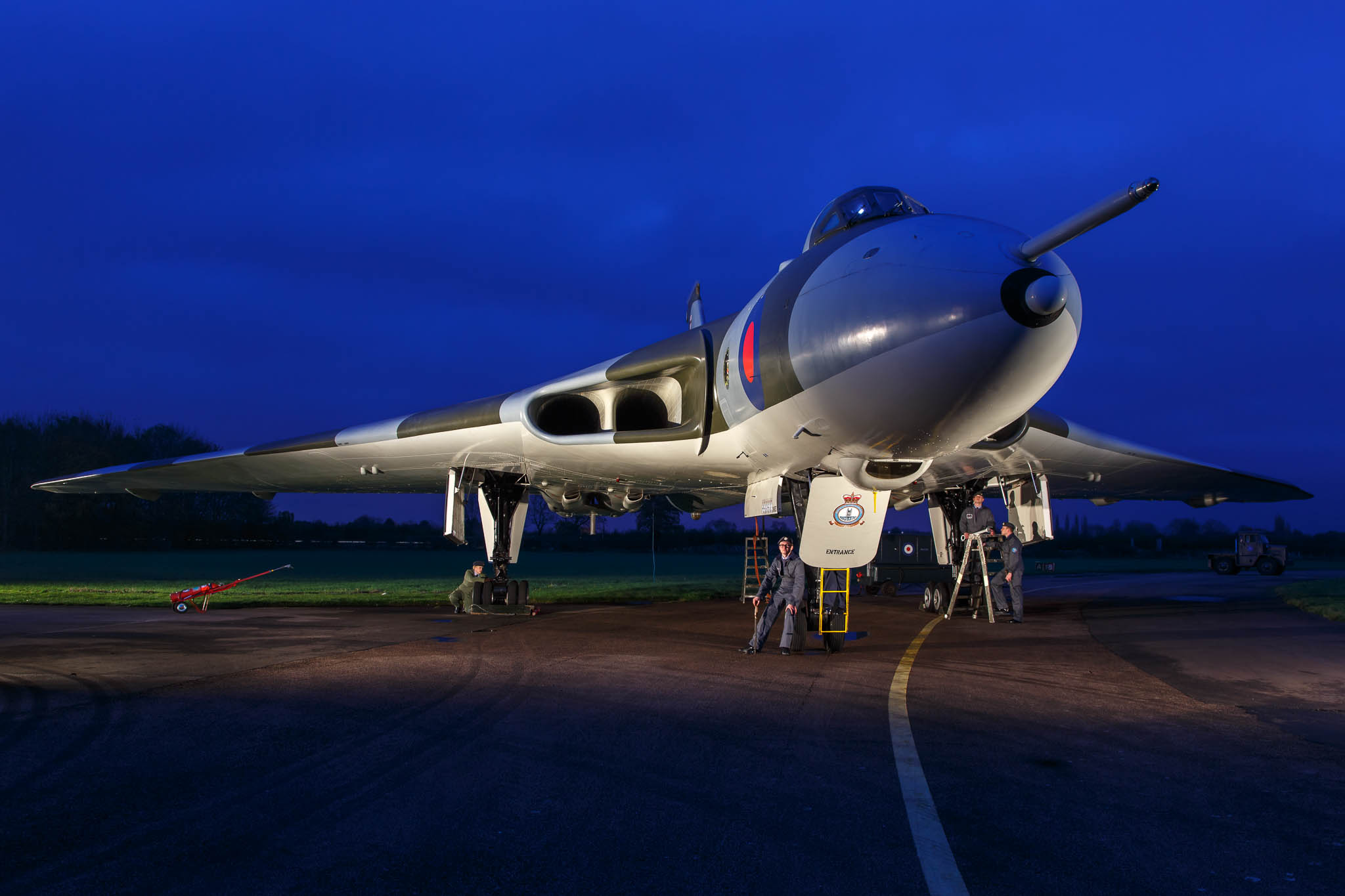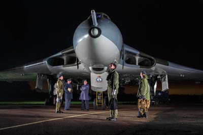 | The final scene with the groundcrew ready to call the Vulcan out, sadly the jet engines were not run on the night |
