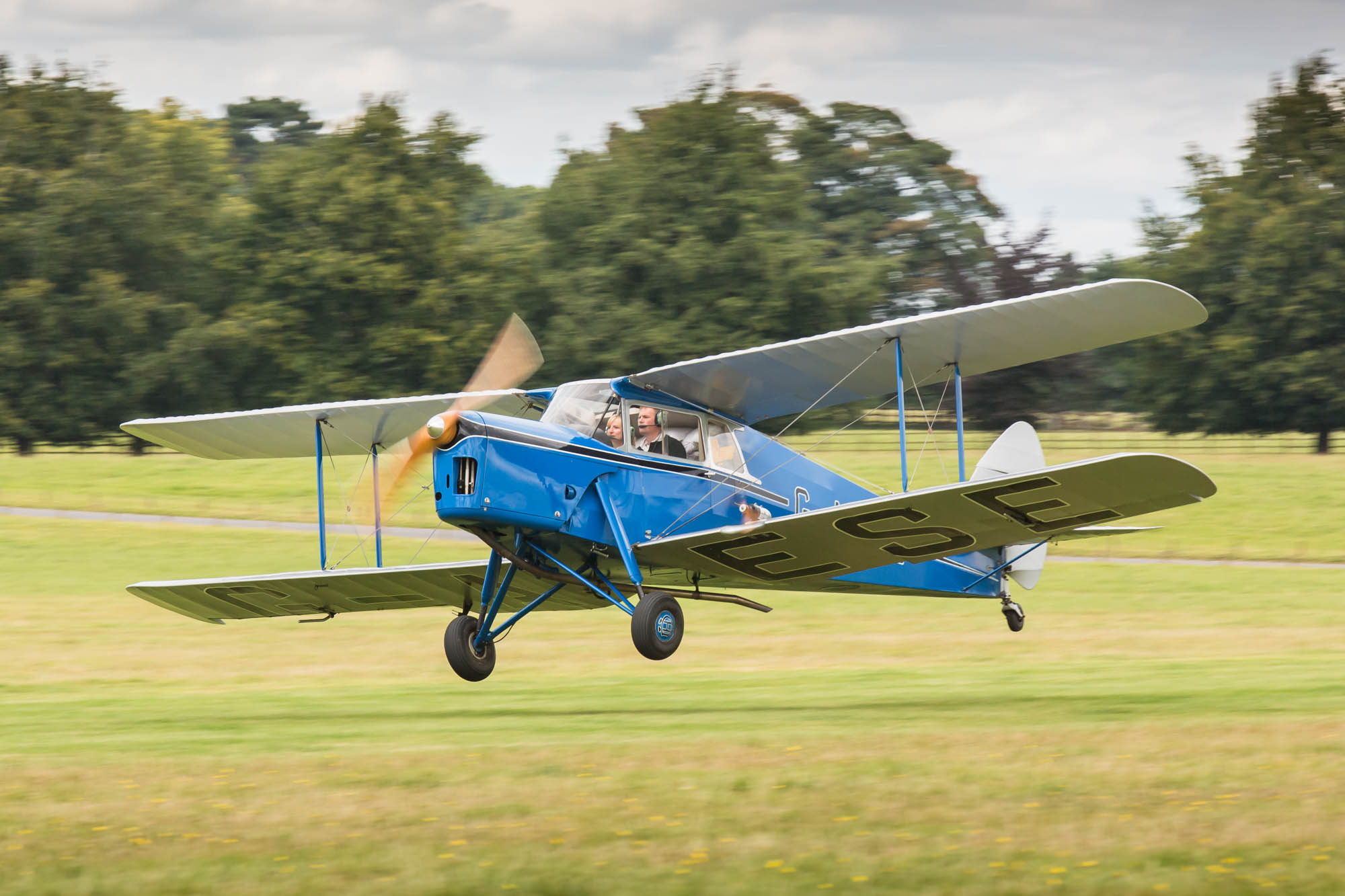 | The pilot of DH.82A Tiger Moth (G-ALIW) fighting the gusting cross-winds on the Saturday. |