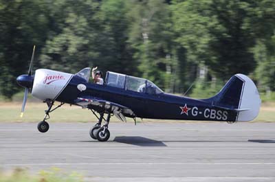 | Left to right: Yakovlev Yak-52 (G-CBSS 'Janie' ex ex RA-44475) and Cessna LC-126A (195) (N3458V as 07159) built in 1948 it is based at Saint-Ghislain in Belgium. |