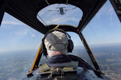 Bjorn Hellenius was here for the second year and had arranged a back-seat flight in the Texan with an Avenger and Yak 50. During a pre-flight briefing with the French Avenger pilot Peter van Loey a Flight Director stepped in to translate and assist with the planning. Hellenius described the experience; "We circled above the airfield the Texan pilot listened to my instructions and positioned the aircraft perfectly with the Avenger. We were banking together and changing positions constantly to give a variation of shots with light from different angles." For the Yak 50 shots he continued; "The Yak 50 pilot wanted some exciting images and so flew inverted, he positioned himself above us so I could shoot straight in to the cockpit."